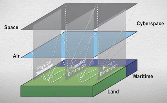 Las dimensiones físicas, de información y humanas en cada dominio proporcionan al comandante y su estado mayor una evaluación integral, permitiéndoles anticiparse al impacto en sus operaciones. Es vital entender la influencia de estas dimensiones. Por ejemplo, en el caso de la información, los medios de comunicación actuales permiten que un teléfono celular se convierta en un arma. Esto refleja el efecto que puede tener “el soldado estratégico”, al hablar de las acciones de un solo soldado en el campo de batalla, transmitidas como información pública, que llegan a tener efectos estratégicos en las operaciones, ya sean positivos o negativos.