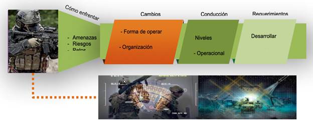 Ante esta caótica realidad, las Fuerzas Armadas, requieren adaptarse y extender su mirada hacia el futuro, en el caso del Ejército ecuatoriano según la Dirección de Transformación y Desarrollo Militar (DTDM) (2020), siguiendo procesos de: nacionalización, estructuración, profesionalización, adaptación tecnológica, fortalecimiento del ejército, modernización, fortalecimiento de capacidades, restructuración y transformación; todo esto para desarrollar capacidades flexibles, modulares, dinámicas, que le permitan enfrentar los retos venideros, convirtiéndose en ejércitos multimisión, en donde, de acuerdo con Arce (2019) el centro de gravedad es y seguirá siendo la dimensión humana; cuya polivalencia del profesional militar, le permitirá enfrentar escenarios complejos mediante una toma de decisiones respaldada en el conocimiento.